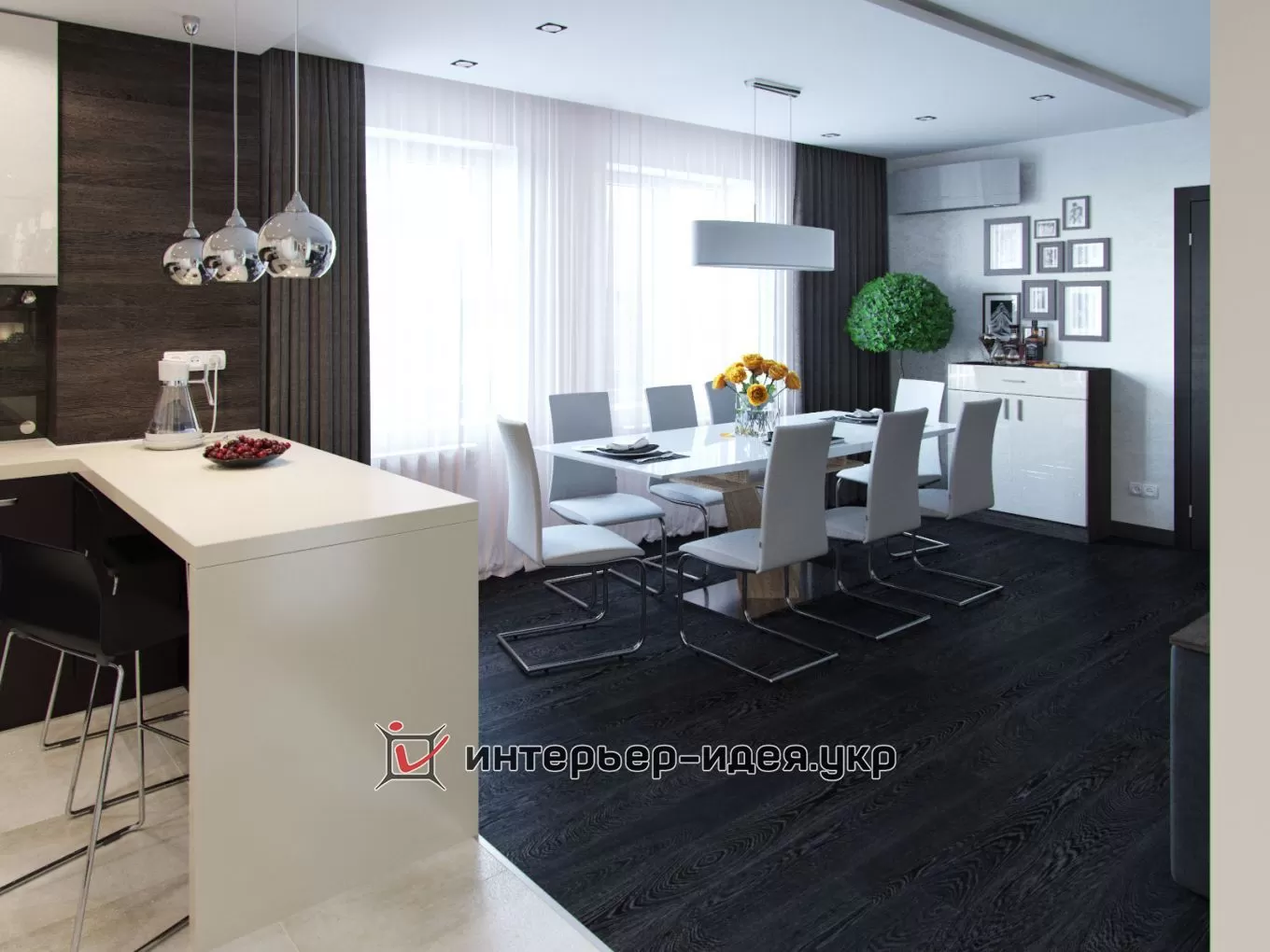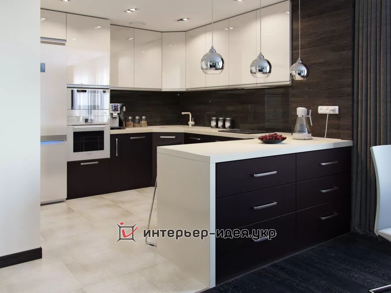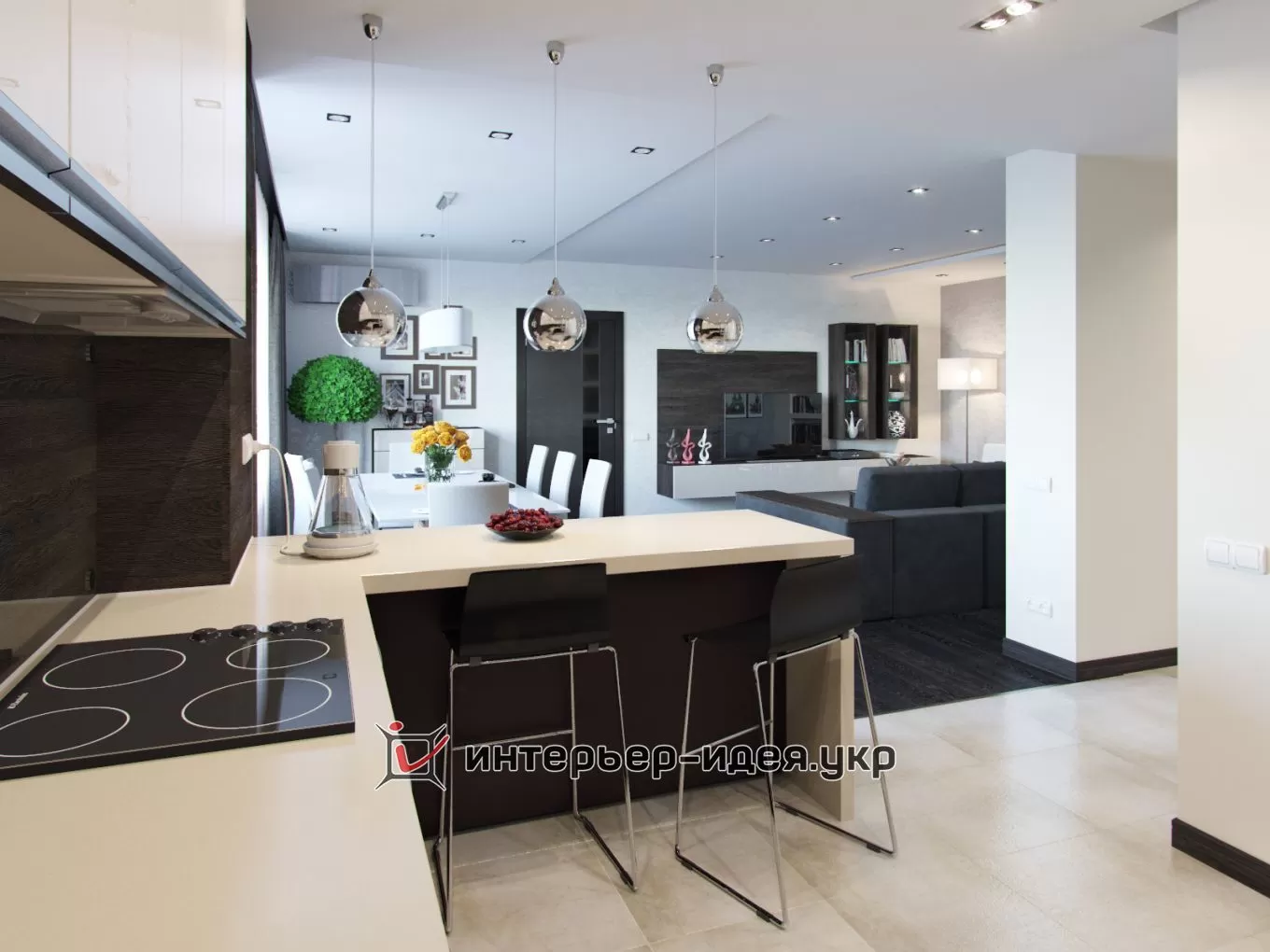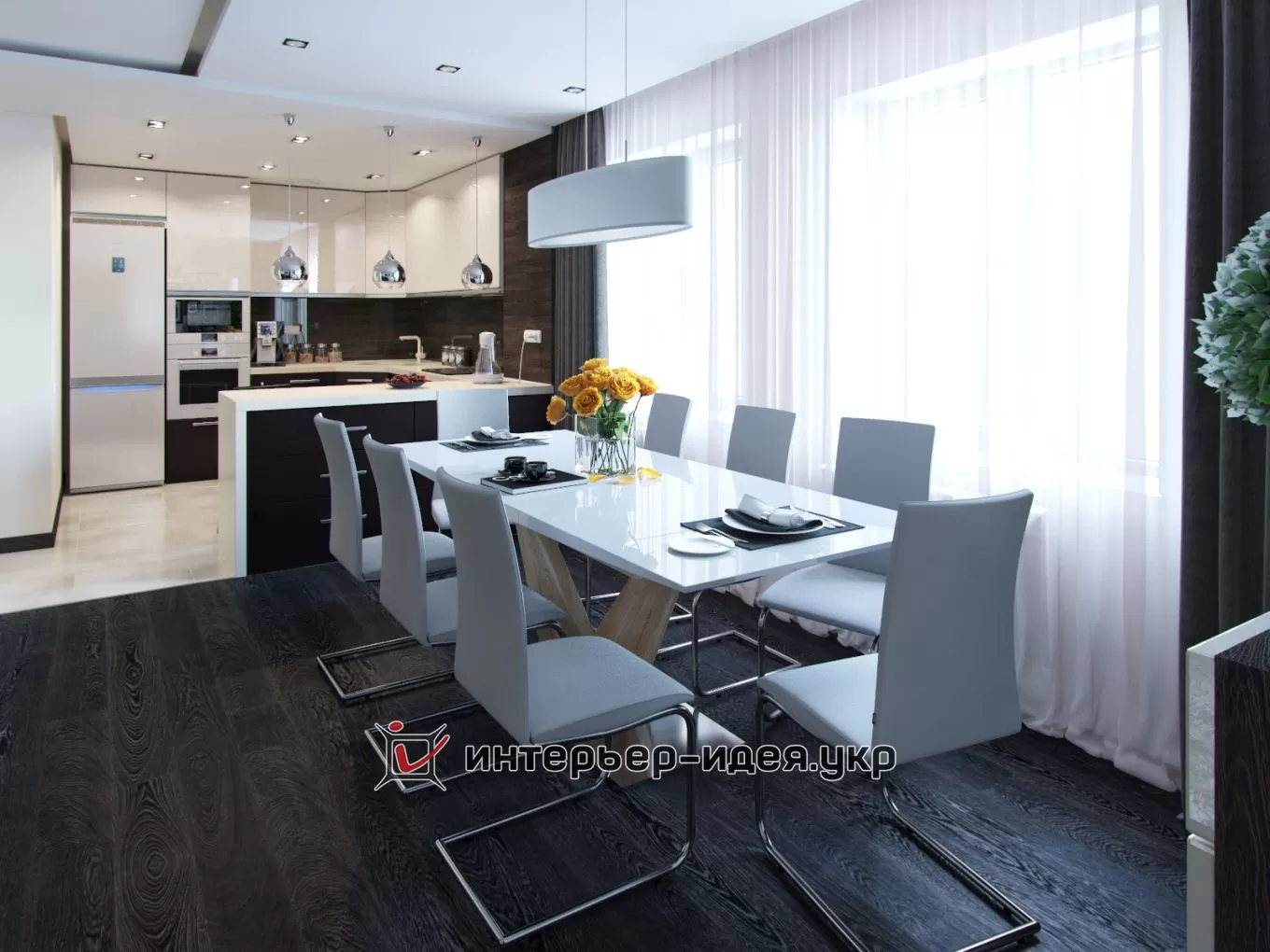 Стильний, стриманий за колірною гамою дизайн кухні-студії. м. Черкаси.