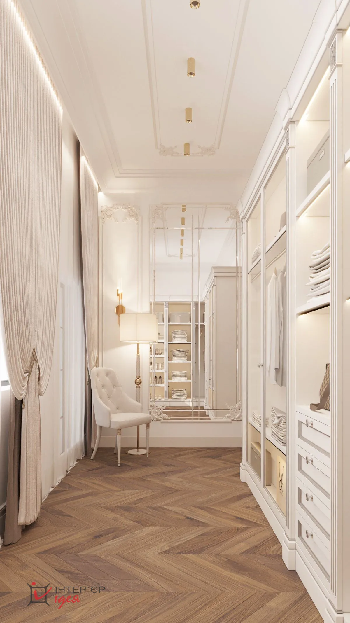 Також дана мастер спальня має свою велику гардеробну кімнату.