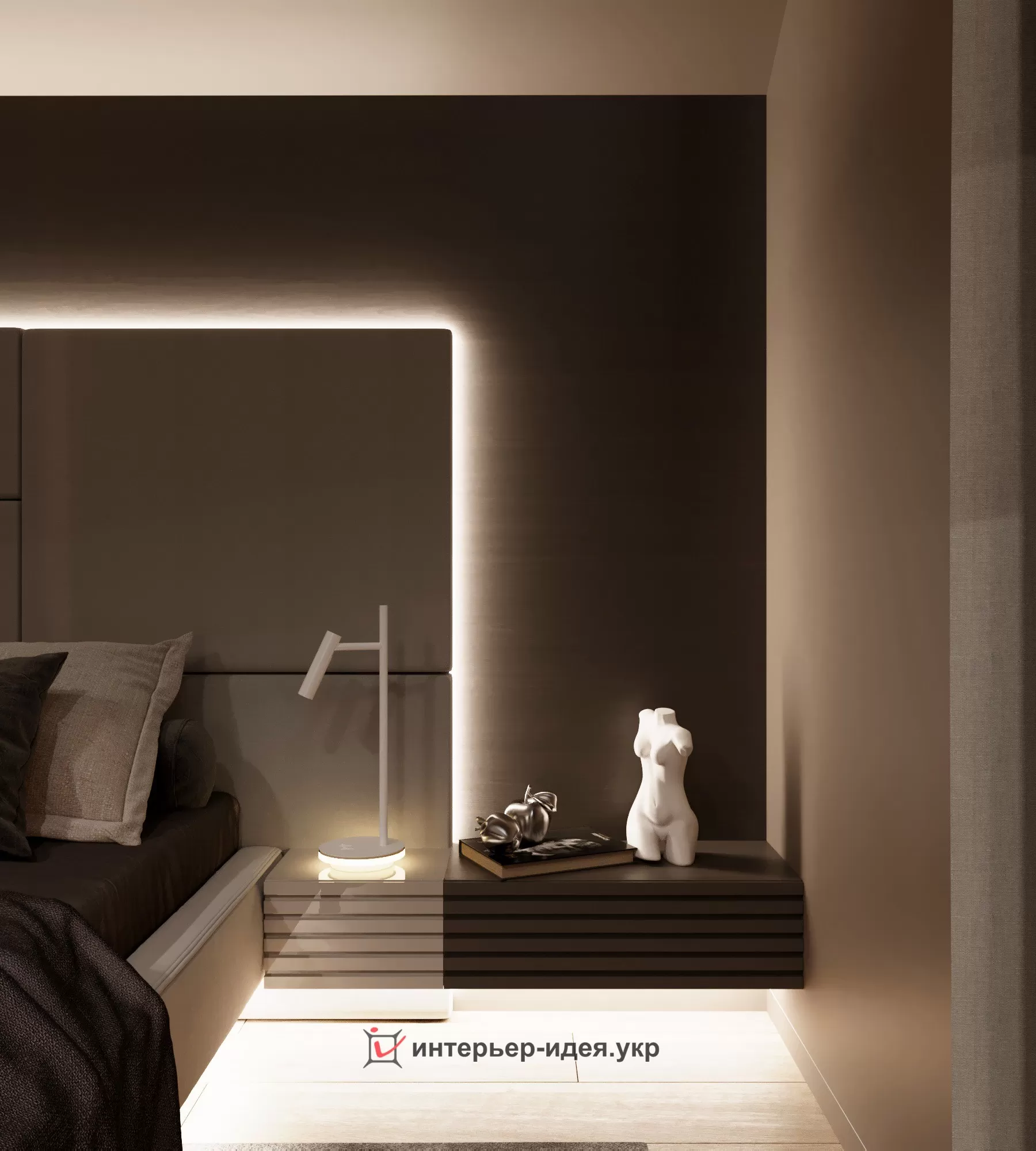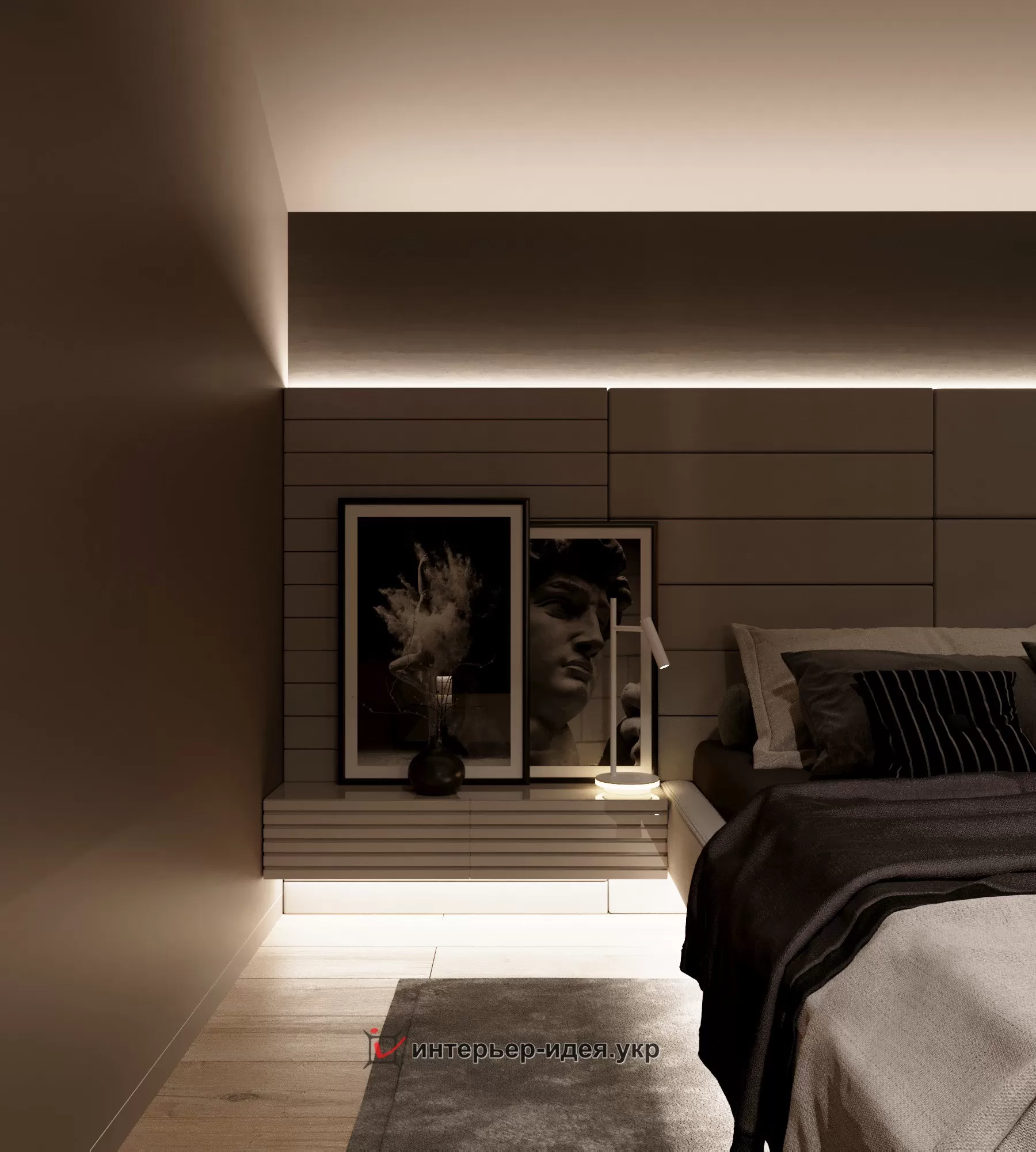 Але завдяки використанню теплих відтінків, м'якою підсвічуванні і текстилю, тут відчувається атмосфера затишку і розслабленості.